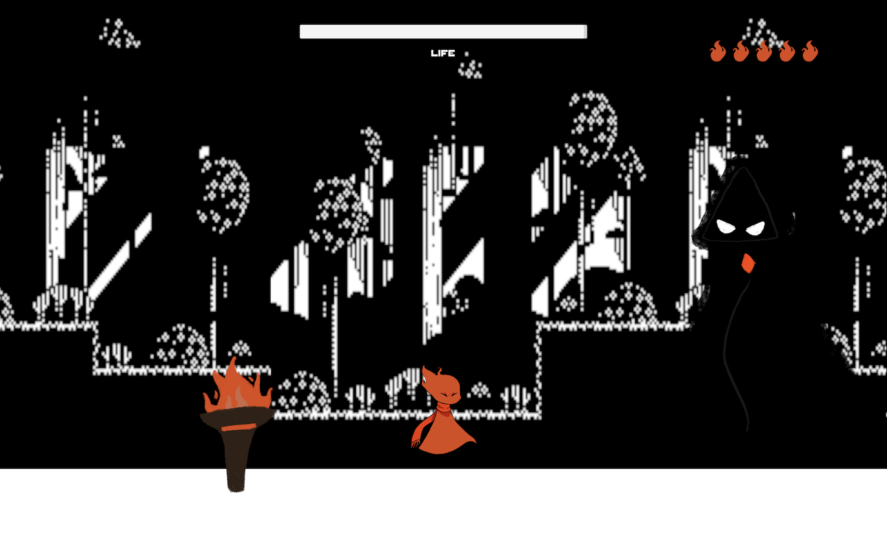 - HUD de Jogo: Exibição de estado atual (Líquido/Sólido/Gasoso) pelas animações diferentes e barra de Vida do Personagem.